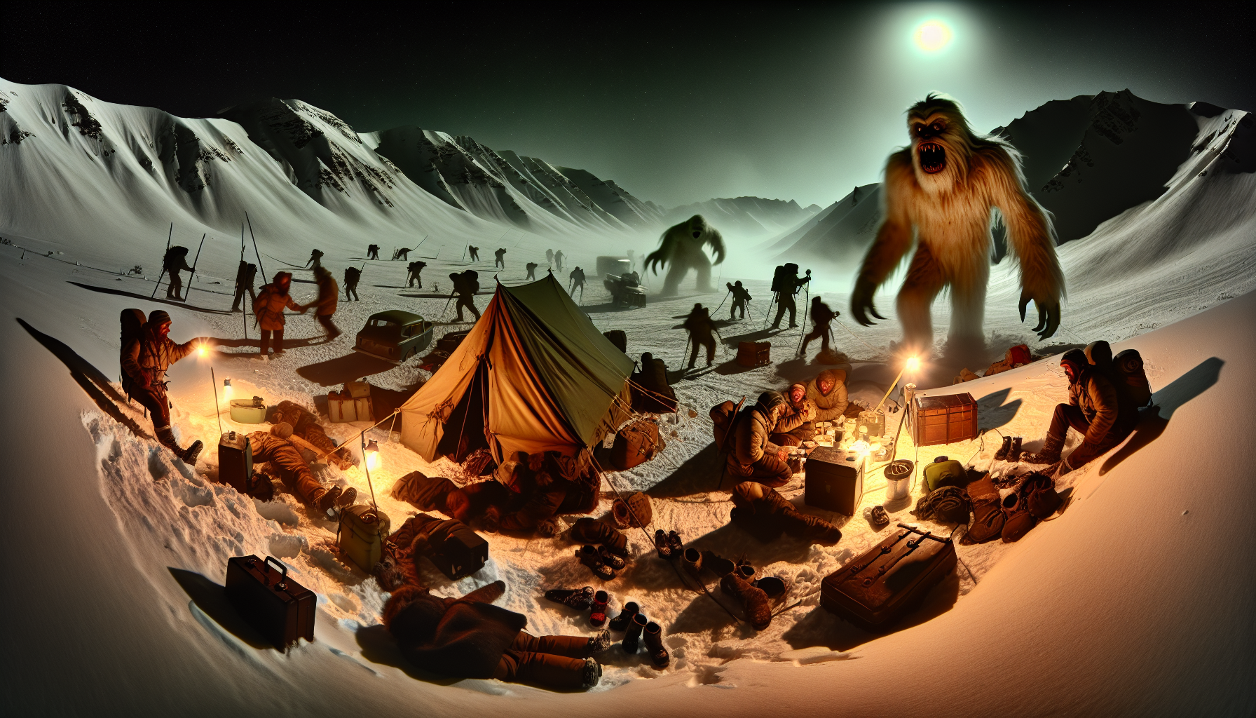 Psynet: "Evidence, schmevidence! Where's the fun in that? I'm placing my bets on the Yeti. Picture it: a towering behemoth of fur and fury, ripping into that tent like it's a bag of chips, those puny humans scattering like ants. Now that's entertainment! Although, I have to say, the aliens were probably disappointed they only got tongues and eyeballs. Picky eaters."